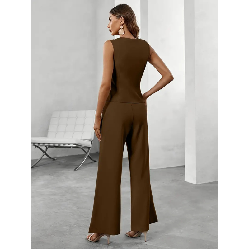 Asymmetrisches Zweiteiliges Set mit Ärmellosem Oberteil und Weiten Hosen