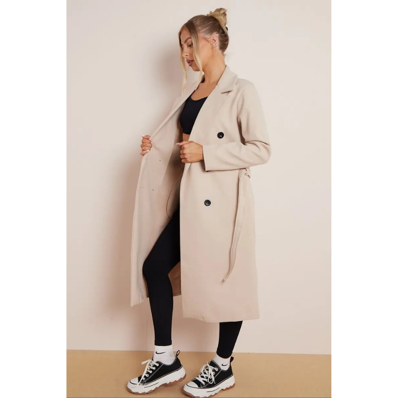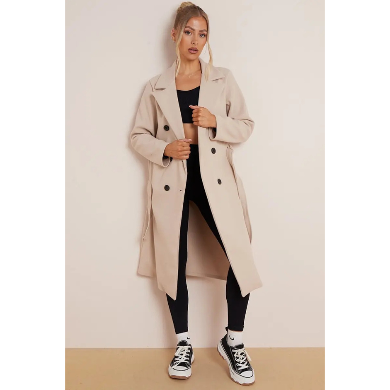 Erleben Sie maßgeschneiderte Eleganz mit unserem langen Mantel mit Gürtel, perfekt für stilvolles Schichten in kühleren Monaten. Die strukturierte Silhouette und die verstellbare Taille bieten eine ideale Mischung aus Komfort und Eleganz, die den Übergang vom Wochentag zum Wochenende mühelos gestaltet.