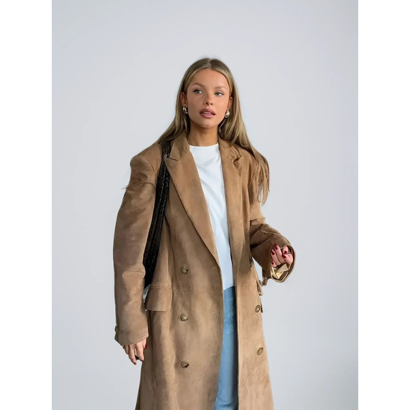 Premium Damen Trenchcoat aus Wildleder – Zeitloses Design