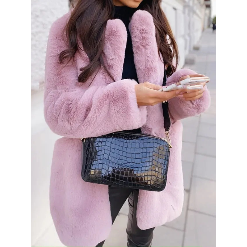 Entdecken Sie den Rose Faux Fur Coat – die perfekte Kombination aus Wärme und Stil. Hergestellt aus üppigem Kunstfell, bietet dieser Mantel ein weiches, volles und luxuriöses Tragegefühl, ideal für kalte Tage.