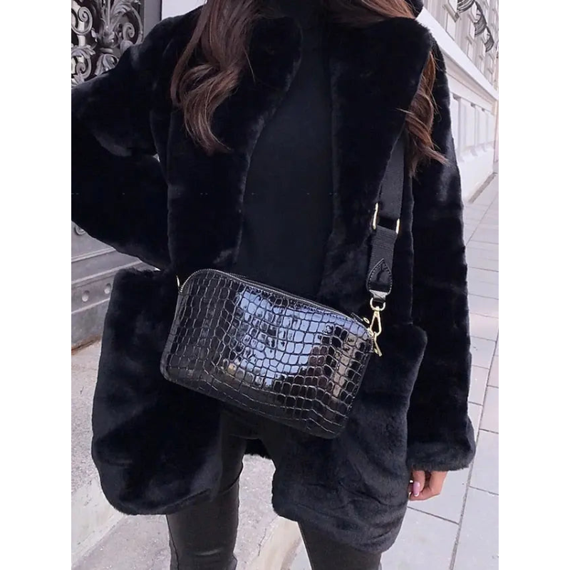 Vegan-freundlich und modern, ist dieser Mantel perfekt für frische Herbsttage, winterliche Stadtspaziergänge oder besondere Abende. Seien Sie bereit, gesehen zu werden!