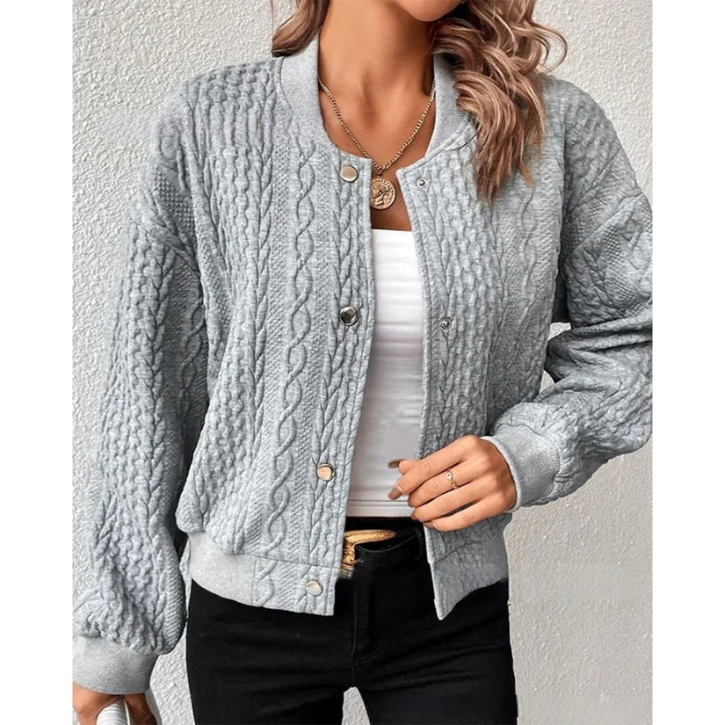 Die Noor Gestrickte Kurze Damenjacke ist die perfekte Mischung aus Stil und Komfort für deine Wintergarderobe. Mit ihrem modernen, kurzen Schnitt und der weichen Strickstruktur hält sie dich warm und sieht dabei fantastisch aus. Verpasse nicht die Chance, deinen Look zu vervollständigen!