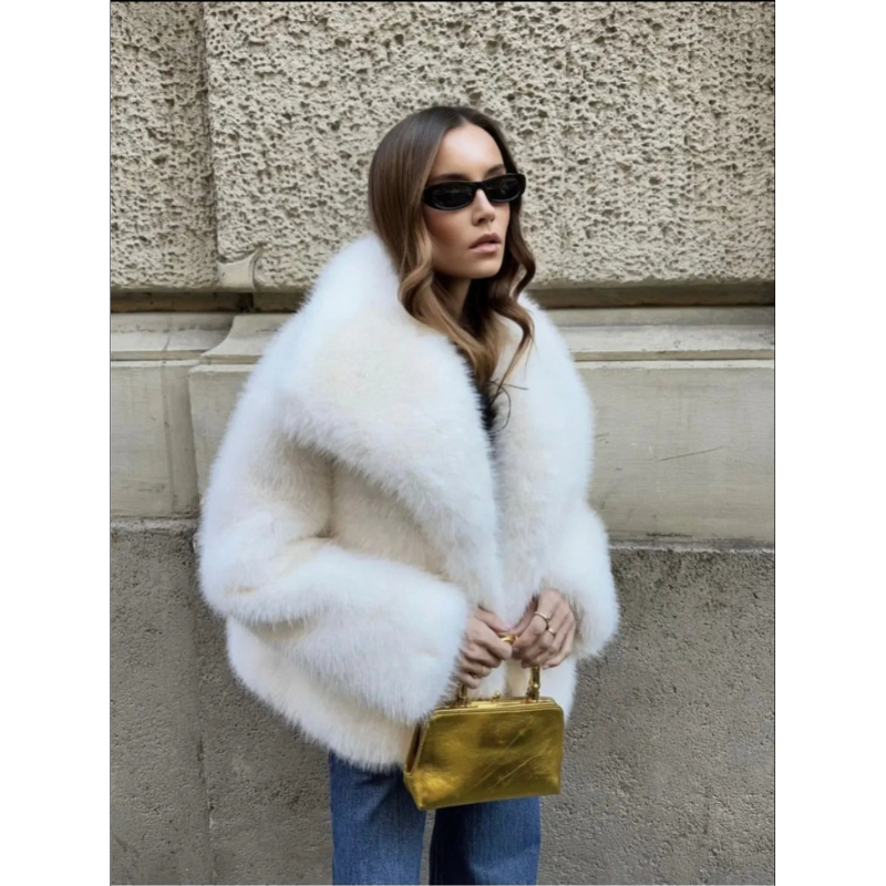 Die SuzyLuxe Kunstfelljacke ist perfekt für Frauen, die mit Raffinesse auffallen möchten. Das volle, seidig-weiche Kunstfell bietet ein reichhaltiges und warmes Tragegefühl, während die leicht voluminöse Silhouette einen luxuriösen Eindruck hinterlässt.