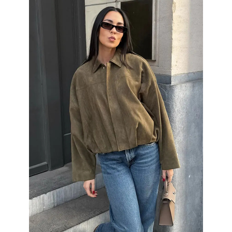 Die Aveline Mocka Bomberjacke vereint vintage Charme und moderne Eleganz in einem stilvollen Design. Hergestellt aus hochwertigem Mocka, bietet sie ein luxuriöses Gefühl und eine lässige Passform, die Klasse ausstrahlt.