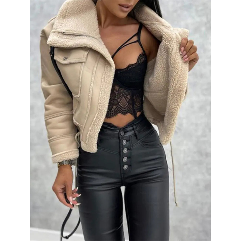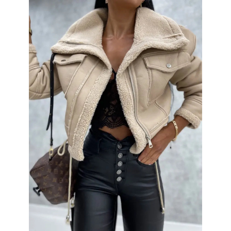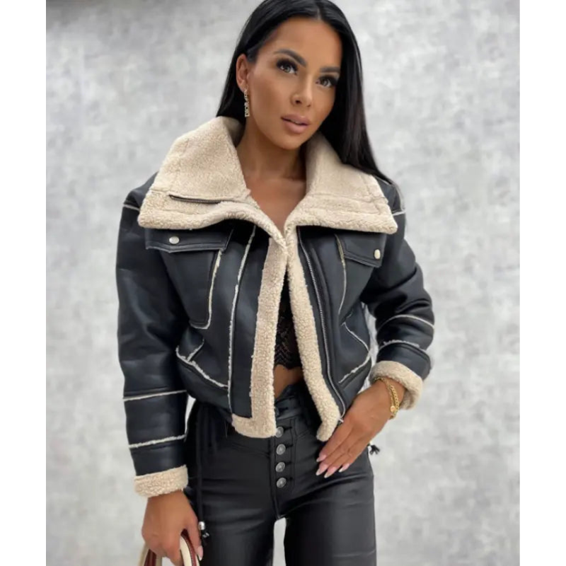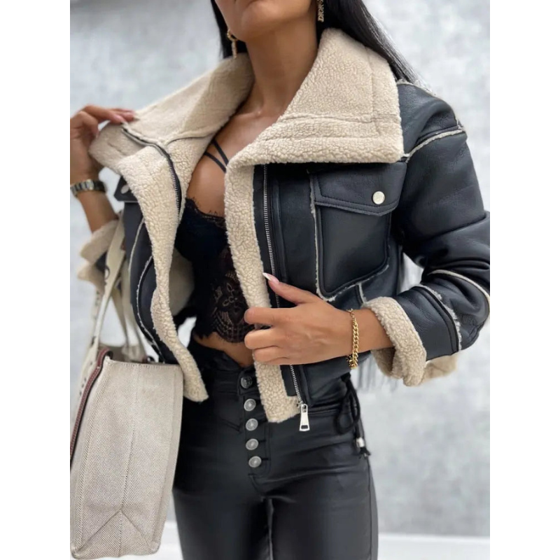 Damen Kunstlederjacke Dina – Warm gefüttert mit Fleece & Lässig Chic