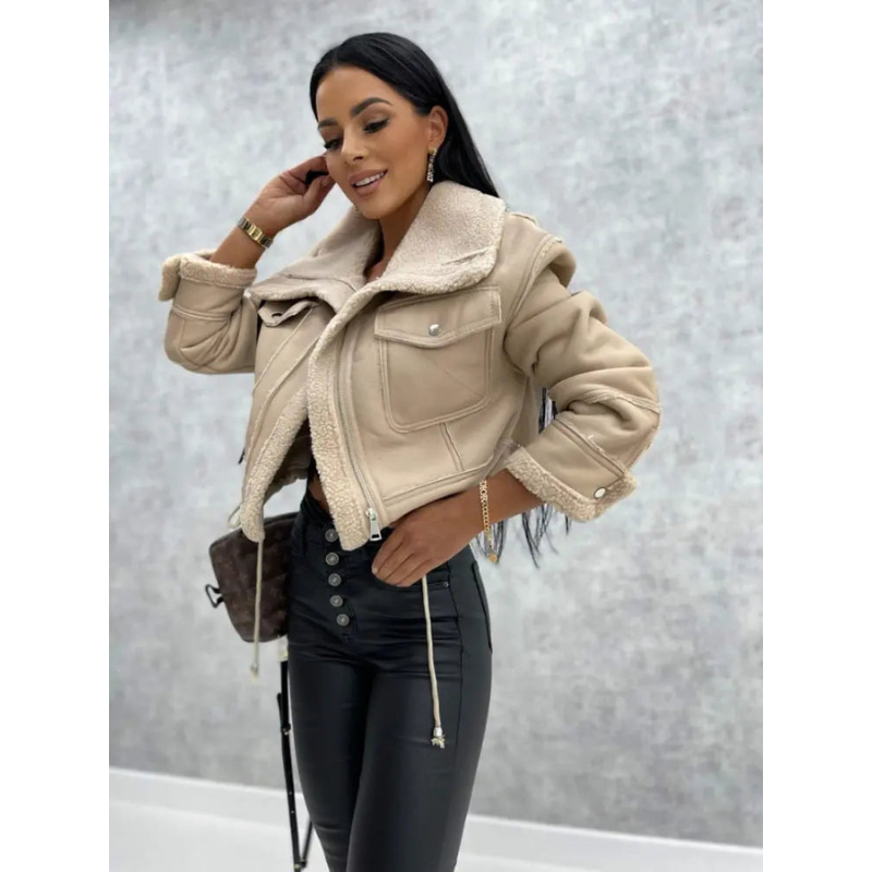Die DinaFaux-Jacke ist perfekt für Frauen, die modernen Stil und Komfort schätzen. Hergestellt aus hochwertigem Kunstleder, bietet sie eine zeitlose Eleganz, während das weiche Fleecefutter für angenehme Wärme sorgt, ohne schwer zu wirken. Die schlanke Passform umschmeichelt die Silhouette und garantiert, dass Sie stilsicher zu jedem Anlass auftreten.