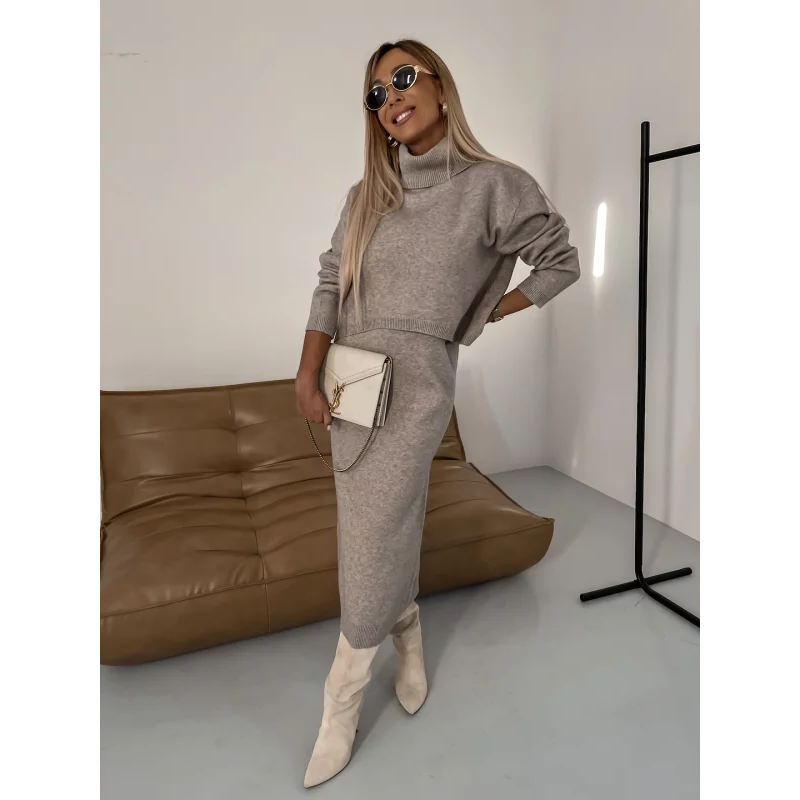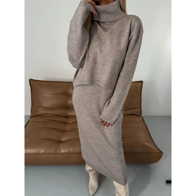Zweiteiliges Winter-Set für Damen: Rollkragenpullover und Midi-Rock