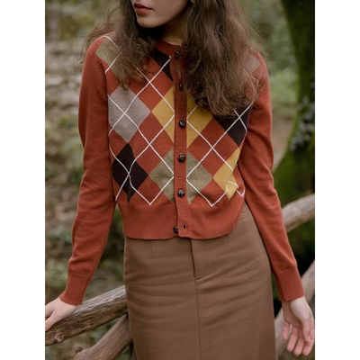 Rostfarbene Damen Strickjacke mit Rautenmuster