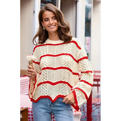 Gestreifter Pullover für Damen mit Trompetenärmeln