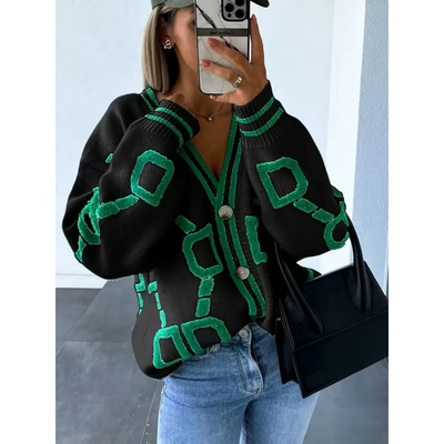 Elvira – Damenstrickjacke mit Rautendesign und Knopfdetails