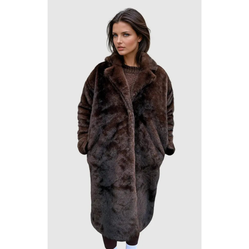 Damen Lange LunaSoft Kunstfellmantel – Luxuriöser Wintermantel aus Faux Fur