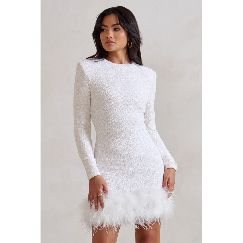Elegantes Mini-Kleid mit luxuriösem Federbesatz und figurbetonter Silhouette