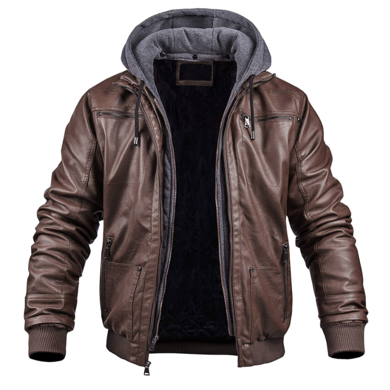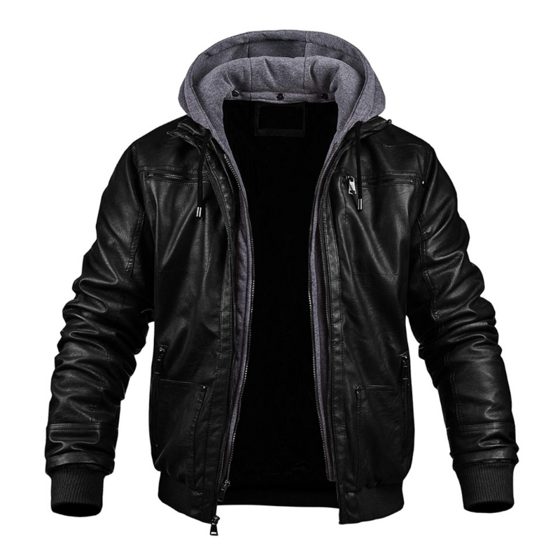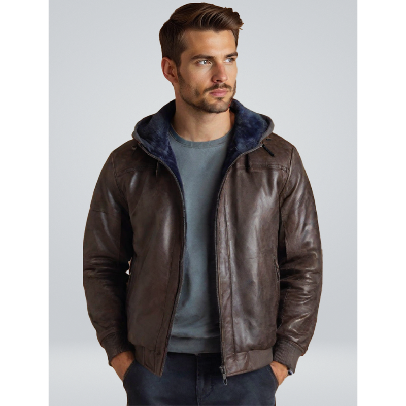 Heinrich Black Leather Winter Jacket with Hood and Warm Lining