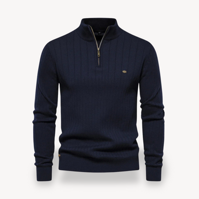 Herre Rippenstruktur Baumwoll-Half-Zip Pullover