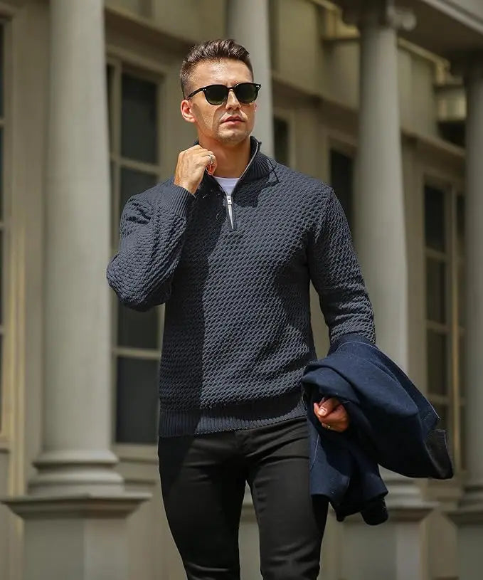 Verona Zip-Up Pullover vereint Eleganz und Komfort in einem stilvollen Design. Ideal für den modernen Mann, der Klasse schätzt, ohne auf Tragekomfort zu verzichten.